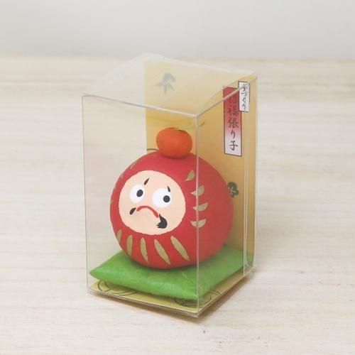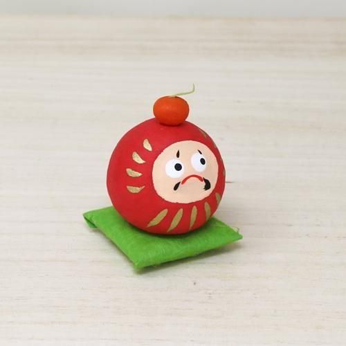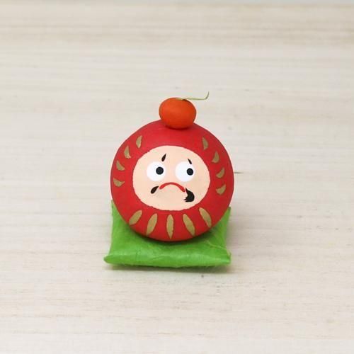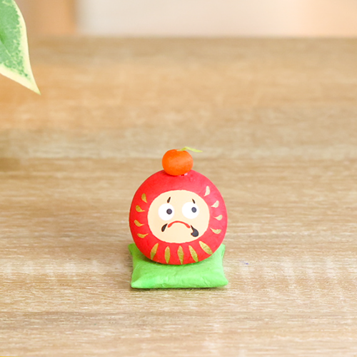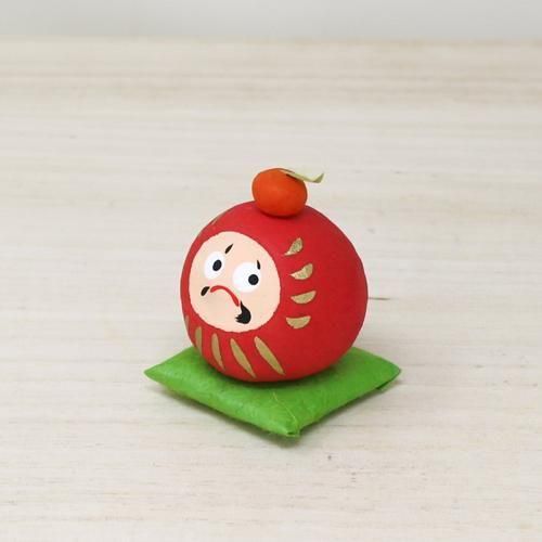 頭にみかんをのせた達磨です。少し困ったような顔で可愛らしい表情に仕上がりました。プチギフトや、お正月に鏡餅風の飾りとして、冬らしい飾りとしてお勧めです。