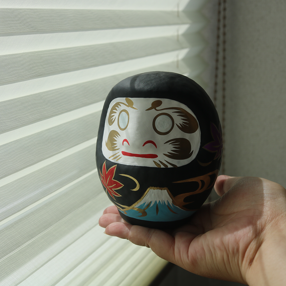 実り豊かな秋を映す金顔の「四季だるま〈秋〉」は、季節を楽しむインテリアとしても、贈り物としても最適な一品です。伝統的な高崎だるまの形をベースに、胴体には手描きで富士山と紅葉が描かれ、日本の秋を象徴する風景があたたかみをもって表現されています。金色の顔は明るく華やかで、お部屋に豊穣の輝きを添える存在感。和室はもちろん、洋室やモダンインテリアにも調和し、しっとりとした秋の風情を演出します。