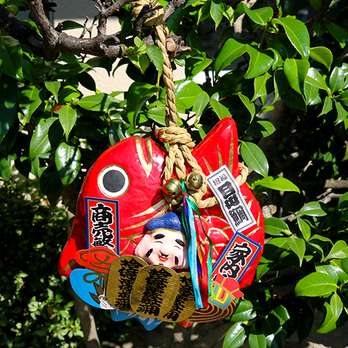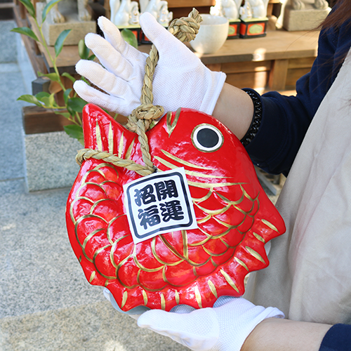開店祝いや結婚式等のプレゼントにも喜ばれる鯛張子(大サイズ)です。おめでたいイベントに、一年通して飾ることができます。吊るせる仕様ですので、壁やドアなどといった目線の高さに合わせた飾り方もできます。